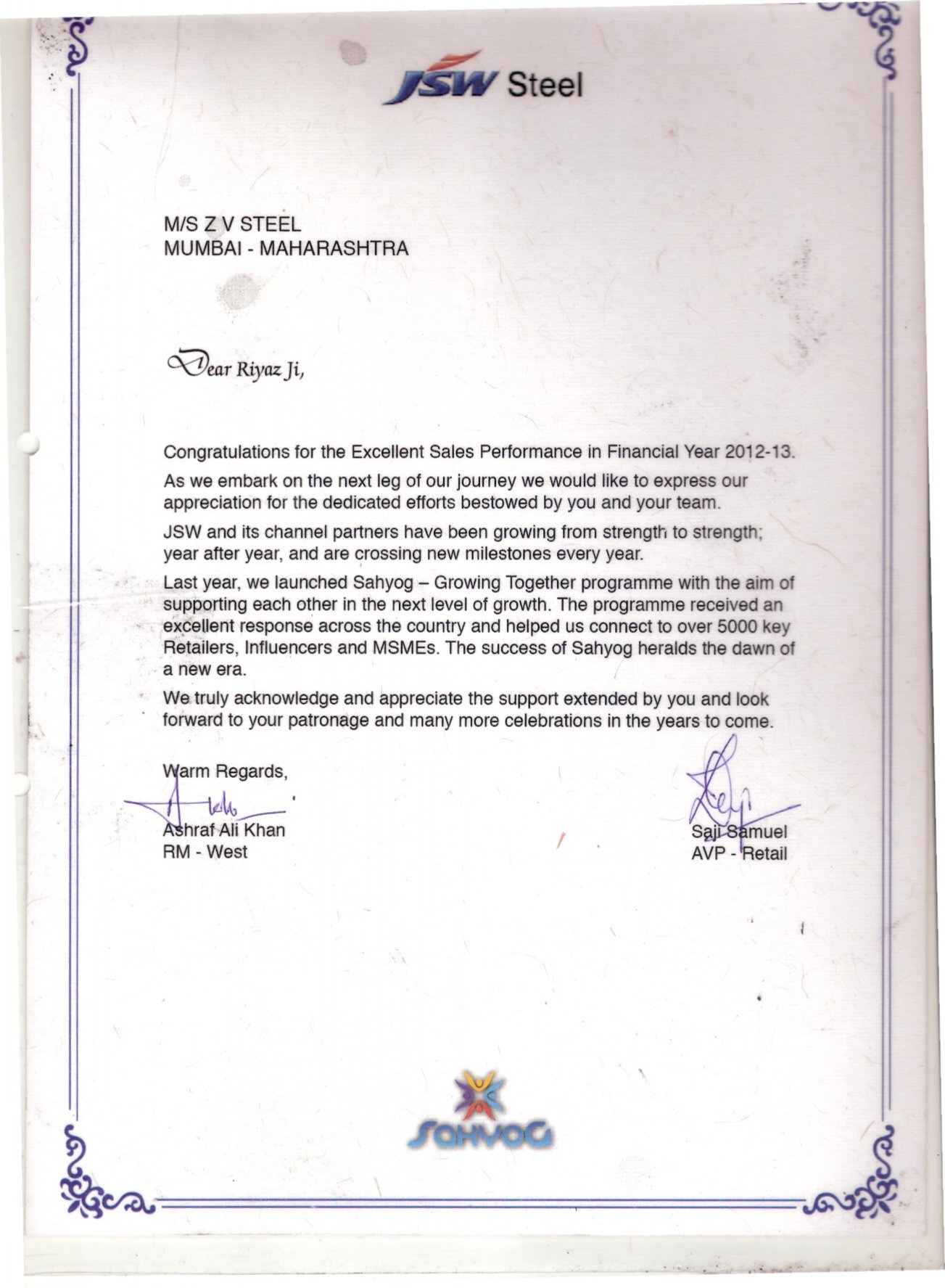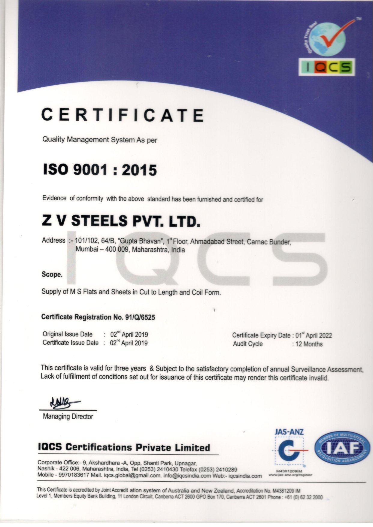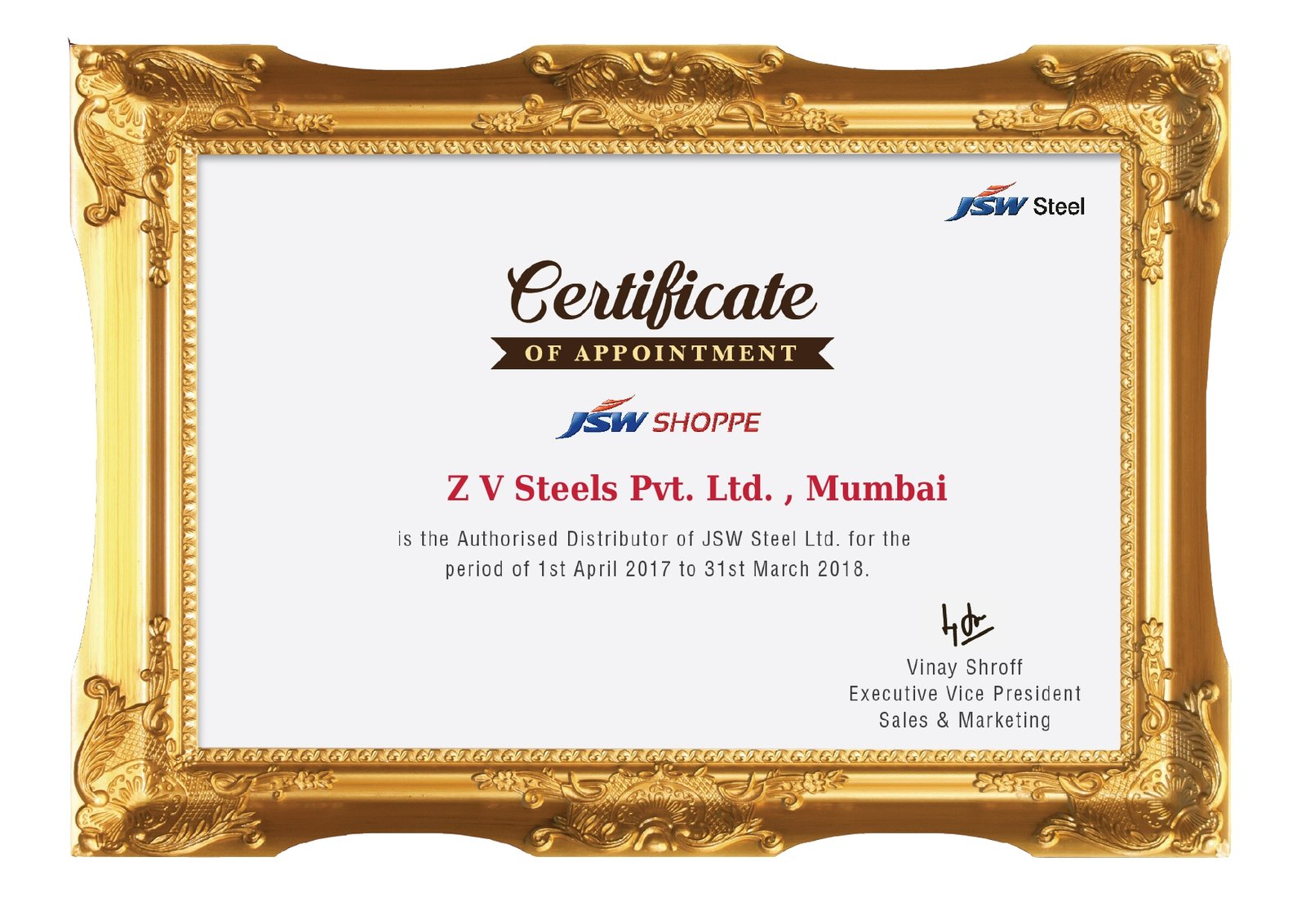 We comply with international standards to provide supreme quality to all our clients. (Add ISO Certificate, Dealer Certificate for JSW, POSCO. We also have some certificates of appreciation from Suppliers.)